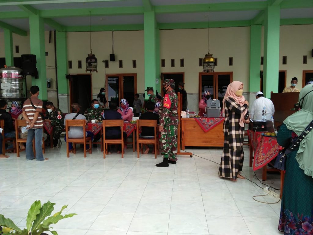 Tulungagung – Ikut menyukseskan Serbuan Vaksinasi dan percepatan pemulihan Covid-19, Serda Imam Zahroni melaksanakan kegiatan pendampingan pengamanan vaksinasi covid 19 tahap 1 jenis SINOVAC di Ponpes Lubabul Fattah Desa Tunggulsari, Kecamatan Kedungwaru, Kabupaten Tulungagung, Jawa Timur, Jum’at (10/09/2021).