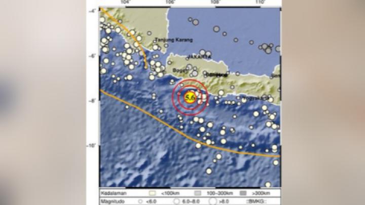 cekkejadian.com, Jakarta – Badan Meteorologi Klimatologi dan Geofisika atau BMKG mencatat gempa sekuat 5,6 Magnitudo mengguncang dari laut, 103 kilometer arah Tenggara Sukabumi, Jawa Barat, Selasa sore ini 27 April 2021. Kedalaman sumbernya 14 kilometer namun telah dipastikan tak sampai memicu tsunami.