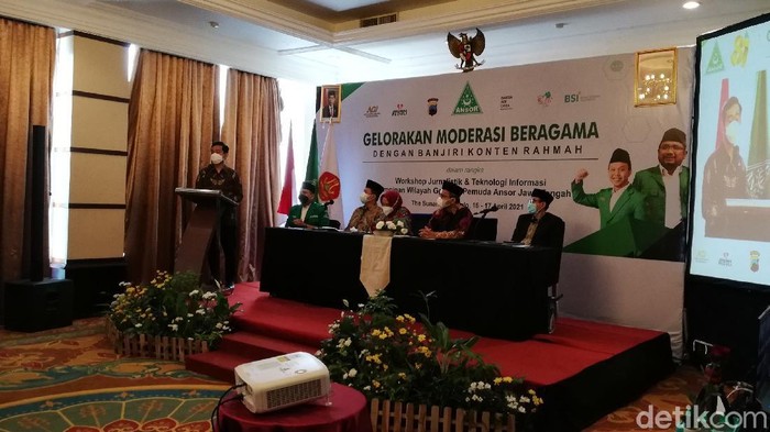 “Saya kira dari narasumber tadi sudah cukup lengkap, karena materi hari ini adalah gelorakan moderasi beragama dengan banjiri konten rahmah, tadi saya kira sudah cukup lengkap sekali,” kata Gibran saat memberikan sambutan dalam workshop jurnalistik yang digelar GP Ansor, di The Sunan Hotel, Solo, Jumat (16/4/2021).