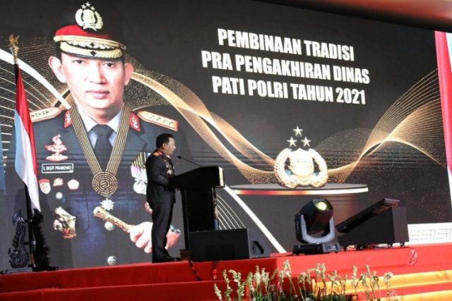 JAKARTA – Kapolri Jenderal Polisi Listyo Sigit Prabowo bertekad mewujudkan Polri yang dicintai rakyat. Hal itu disampaikan Sigit saat menghadiri acara pembinaan tradisi pra-pengakhiran dinas Perwira Tinggi (Pati) Polri 2021 di Auditorium PTIK, Jakarta Selatan, Selasa (21/12/2021).