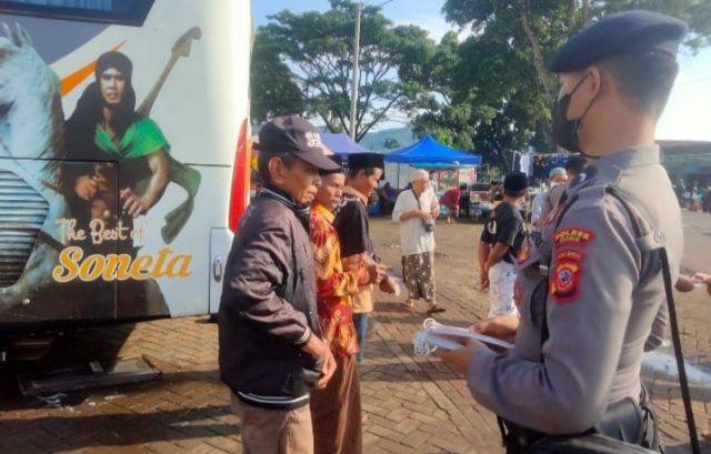 Ciamis – Satuan Samapta Polres Ciamis Polda Jabar melaksanakan operasi yustisi penerapan PPKM Level 3 di wilayah Kabupaten Ciamis. Operasi yustisi kali ini dilakukan di kawasan Obyek Wisata Situ Panjalu, Kecamatan Panjalu, Kabupaten Ciamis, Jawa Barat, Senin (01/11/2021).