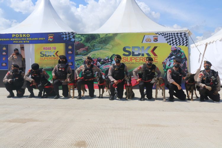 Lombok Tengah – Pengamanan optimal diperlihatkan tim pengamanan event World Superbike (WSBK) dibawah komando Kapolda NTB Irjen Pol Mohammad Iqbal. Dari Tim Gegana, Jibom dan K9 tanpa lelah melakukan patroli.
