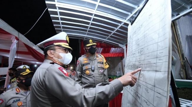 Irjen Pol Istiono didampingi Kabag Ops Korlantas Polri Kombes Pol Rudy Antariksawan, dan Dirlantas Polda Metro Jaya Kombes Pol Sambodo Purnomo Yogo juga memantau kesiapsiagaan petugas di Pos Penyekat KM34 Tol Cikampek-Jakarta.