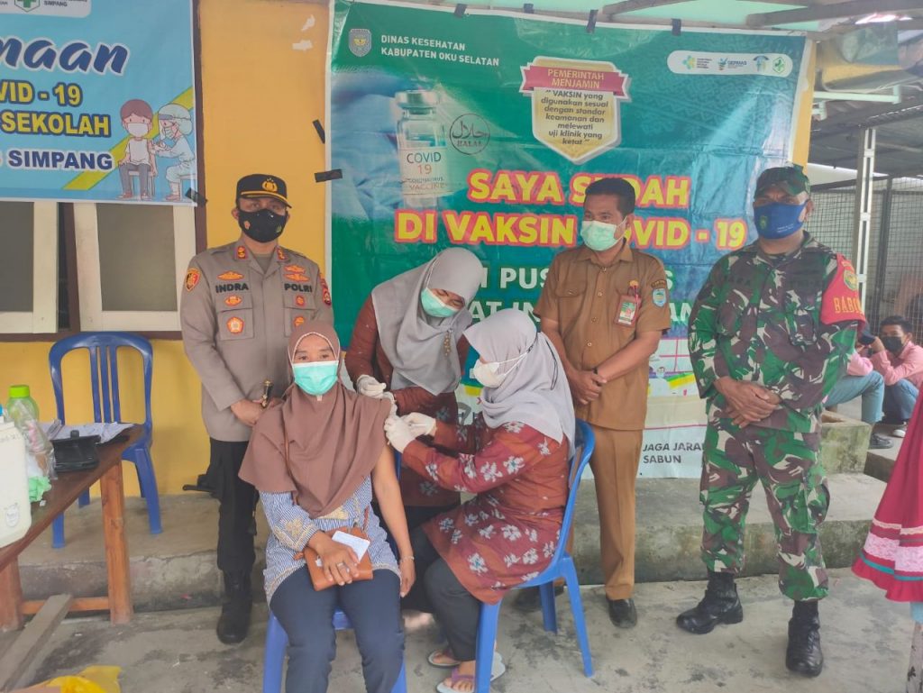 Kapolres OKU Selatan AKBP Indra Arya Yudha, SH, SIK, MH, melaksanakan monitoring pelaksanaan vaksinasi Covid-19 di Puskesmas Simpang Kab. OKU Selatan, Selasa 26 Oktober 2021.