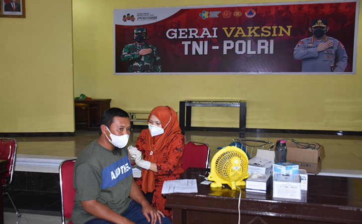 “Warga yang ikut melaksanakan vaksinasi di gerai milik TNI – Polri sangat antusias,” kata Kapolres yang ikut turun meninjau langsung proses vaksinasi Jumat kemarin.