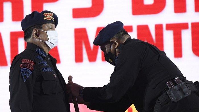 Penganugerahan gelar kehormatan untuk Prabowo Subianto disematkan langsung Komandan Korps Brimob (Dankorbrimob) Polri, Irjen Pol Anang Revandoko di Mako Brimob, Kelapa Dua, Depok, Jawa Barat.