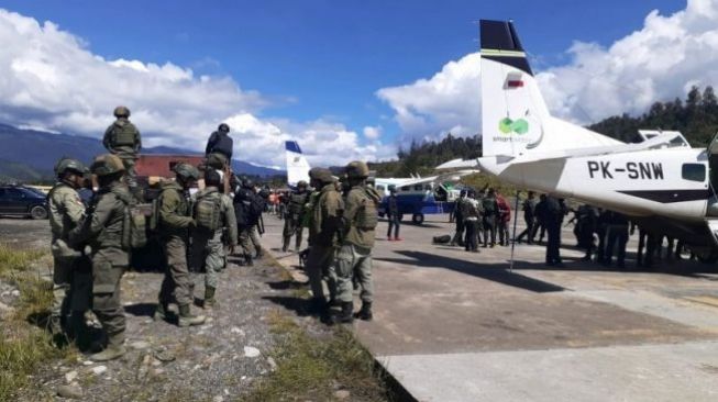 Suara.com – TNI dan Polri melakukan penyisiran pasca terjadinya aksi baku tembak dengan kelompok separatis di Bandara Aminggaru, Ilaga, Kabupaten Puncak, Papua, Jumat (4/6/2021). Hasilnya mereka menemukan dua jenazah warga sipil sekitar wilayah penyisiran.