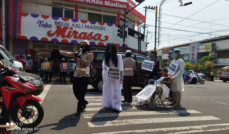 Kasat Lantas Polres Madiun Kota AKP Djoko Winarto mengatakan, sosialisasi protokol kesehatan (prokes) dilakukan dengan menggunakan pocong-pocongan diharapkan bisa menjadikan masyarakat semakin disiplin terhadap protokol kesehatan ketika sedang beraktivitas di luar maupun di dalam rumah.