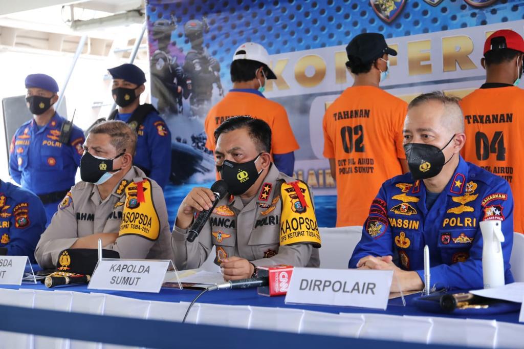“Dua kapal ini yang ditangkap diketahui OCHI/KHF 1937 dan SLFA 3082. Keduanya berlayar menangkap ikan di perairan Selat Malaka, Indonesia. Keduanya berbendera Malaysia,” ujar Kapolda Sumatera Utara (Sumut) Irjen Panca Putra Simanjuntak di Dermaga Pelabuhan Bandar Deli, Belawan, Medan, Senin (10/5/2021).
