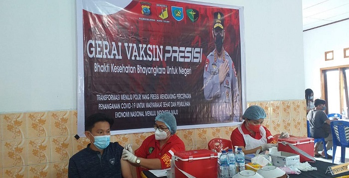 Bolmong – Polres Bolaang Mongondow menggelar vaksinasi massal dengan tema “Bhakti Kesehatan Bhayangkari Untuk Negeri : Transformasi menuju Polri yang Presisi mendukung percepatan penanganan Covid-19 untuk masyarakat sehat dan pemulihan ekonomi Nasional menuju Indonesia Maju”.