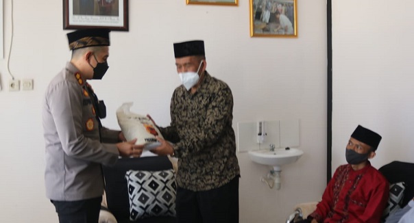 Silaturahmi di Ponpes Arrahmat, Kapolres Majalengka Polda Jabar Berikan Bansos Polri Peduli Covid19 Ditengah PPKM Darurat Level 4