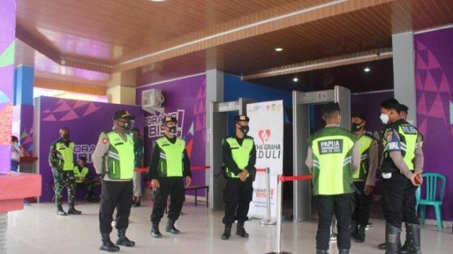 JAYAPURA – Guna memberikan kenyamanan dan rasa aman kepada atlet maupun official di cabor sepak takrauw, personel gabungan terus fokus menjaga venue tersebut.